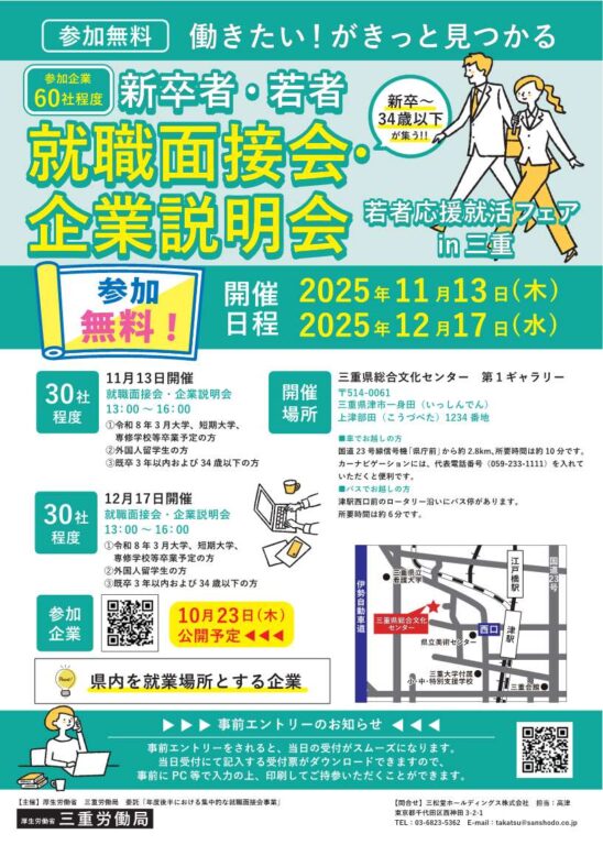 詳細・事前エントリーはこちら→ https://jsite.mhlw.go.jp/mie-roudoukyoku/banner/250712001/290529_00027.html